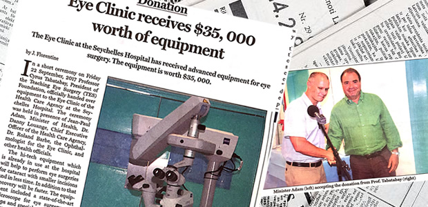 The Eye Clinic at the Seychelles Hospital has received advanced equipment for eye surgery. The equipment is worth $35’000.