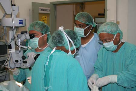 Friday 2nd to Tuesday 6th Mai 2008 Dr. Cyrus Tabatabay, Mr Aboo Moossajee and Mr Stephen Moossajee left Geneva on Friday, May 2nd for a new mission in Mauritius. Dr Tabatabay donated medical books to the internal Library. Disposable material has been generously donated by Huco Vision, Switzerland. This week’s mission is to teach surgical techniques for diabetic retinopathy. Within 2 days, Dr. Tabatabay and his team carried out 10 difficult cases of vitrectomies.